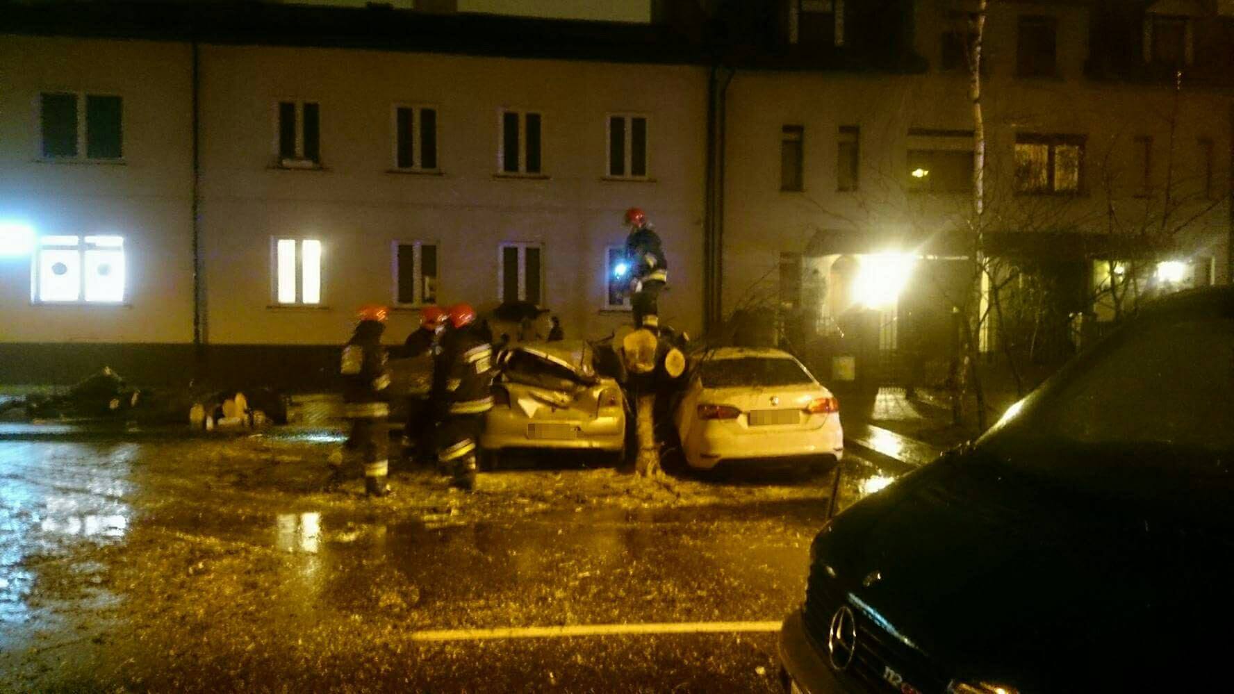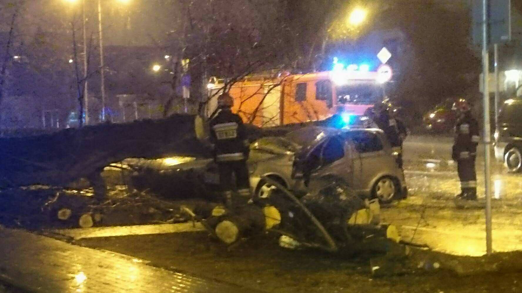 Na wysokości numeru 59 drzewo przewróciło się na dwa zaparkowane samochody. Nikomu nic się nie stało. Na miejscu pracują strażacy, występują utrudnienia w ruchu.
