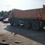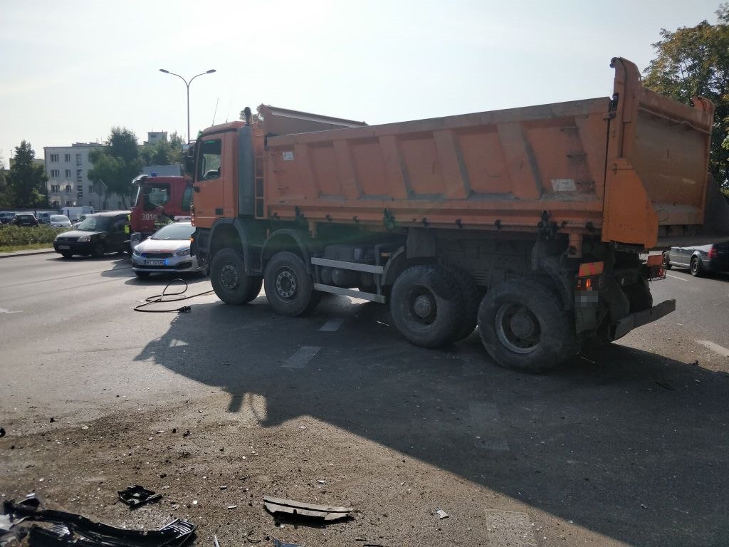 Poważne zderzenie ciężarówki z dwoma osobówkami. Jagiellońska całkowicie nieprzejezdna