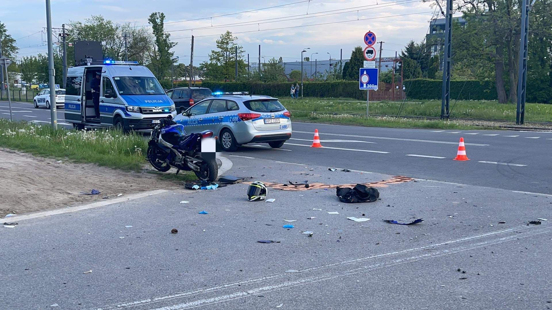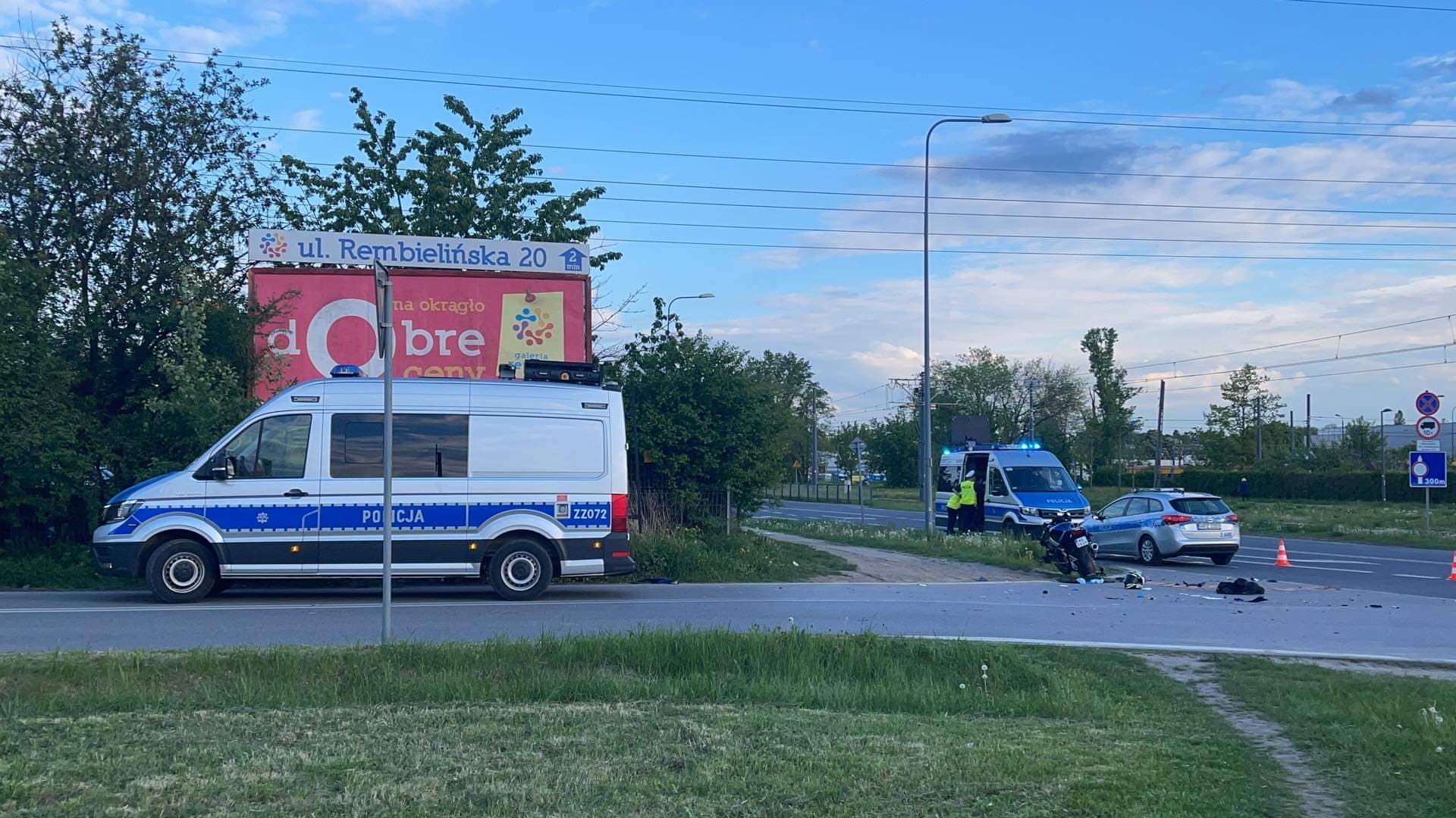 Poważny wypadek na Białołęce. Motocyklista wbił się w bok ciężarówki. Jego stan jest krytyczny