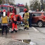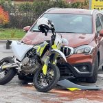 Na skrzyżowaniu Płochocińskiej z ulicą Kobiałka na Białołęce doszło do zderzenia samochodu osobowego marki suzuki z supermoto. Kierujący jednośladem przeleciał nad autem i uderzył o asfalt. Mężczyzna z obrażeniami ciała trafił do szpitala.