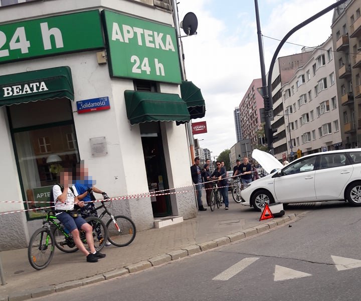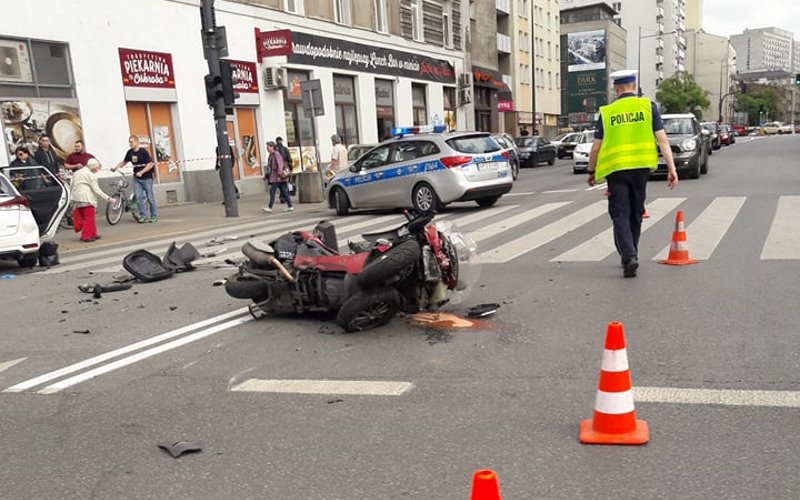 Przed godziną 16.00 doszło do poważnego wypadku na skrzyżowaniu al. Solidarności i ul. Żelaznej. Motocyklista zderzył się z samochodem osobowym marki toyota.
