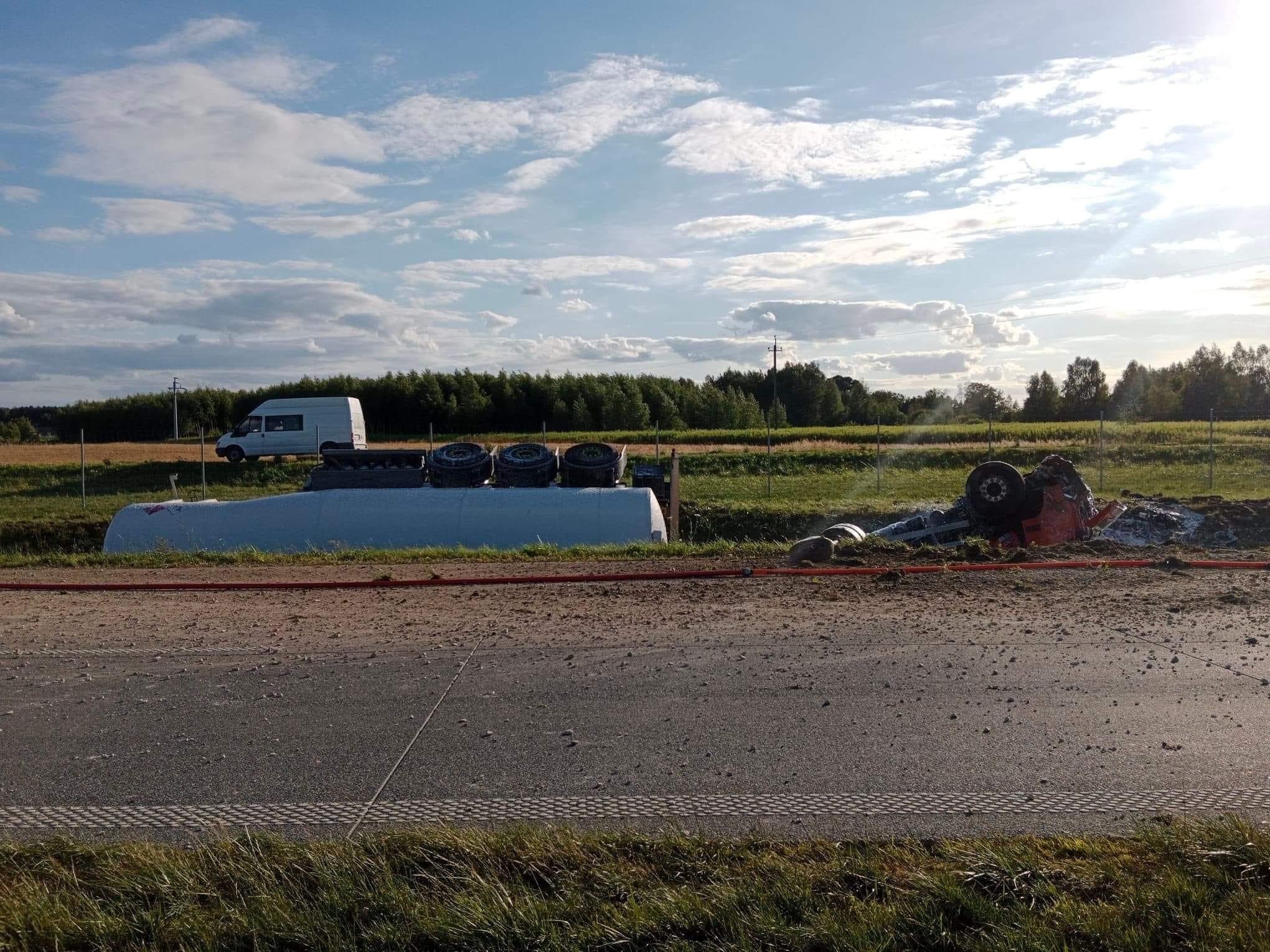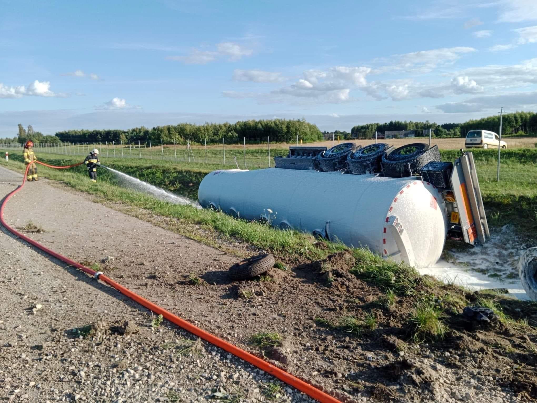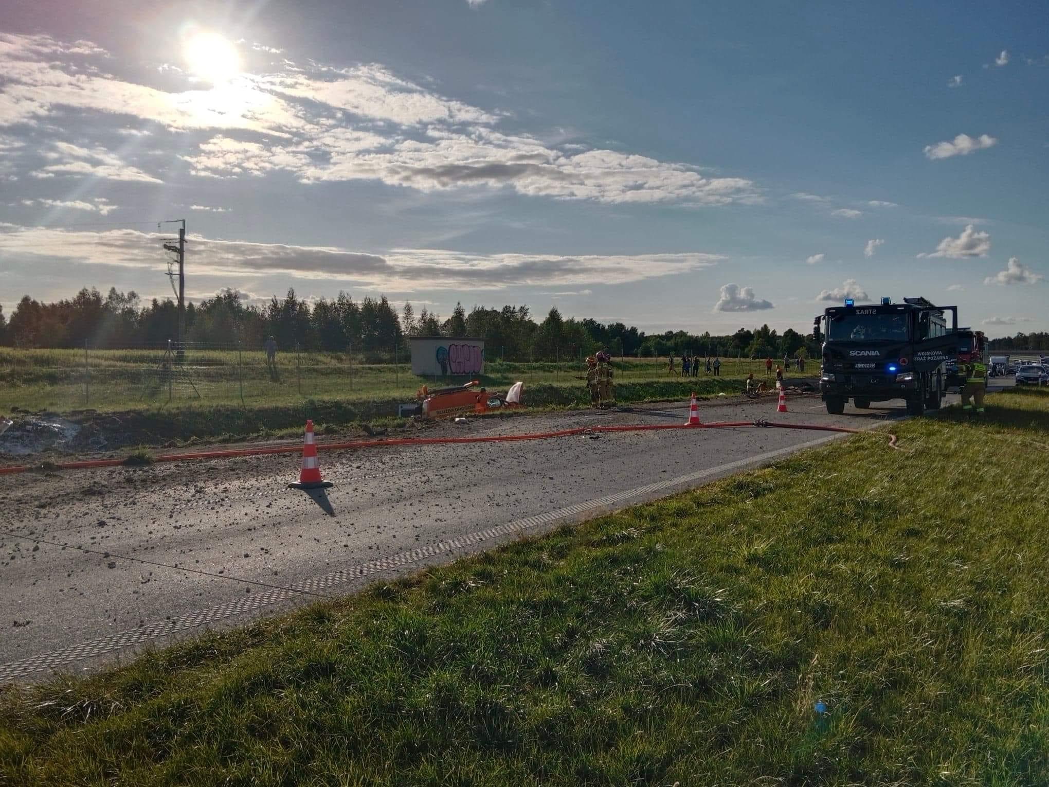 Na trasie S17 w miejscowości Bocian (pow. otwocki) w kierunku Lublina kierujący cysterną wjechał w stojącego na poboczu busa służby drogowej, a następnie pojazd ciężarowy wylądował do góry kołami w rowie. Doszło do wycieku paliwa. Dwie osoby z busa trafiły do szpitala.