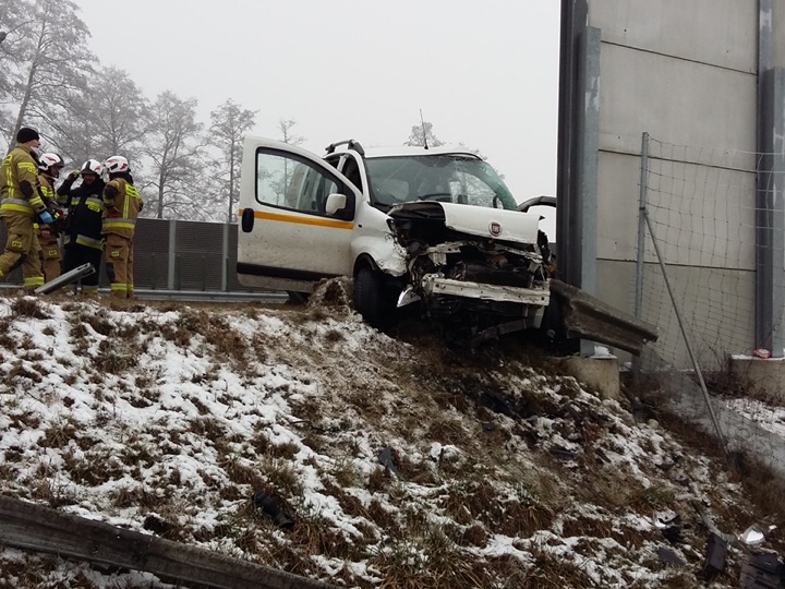 Na trasie S8 na wysokości miejscowości Siestrzeń (pow. grodziski) w kierunku Warszawy kierujący samochodem osobowym marki Fiat stracił panowanie nad pojazdem i uderzył bokiem o barierki dźwiękochłonne. Aby wydostać zakleszczonego kierowcę strażacy musieli użyć sprzętu hydraulicznego.