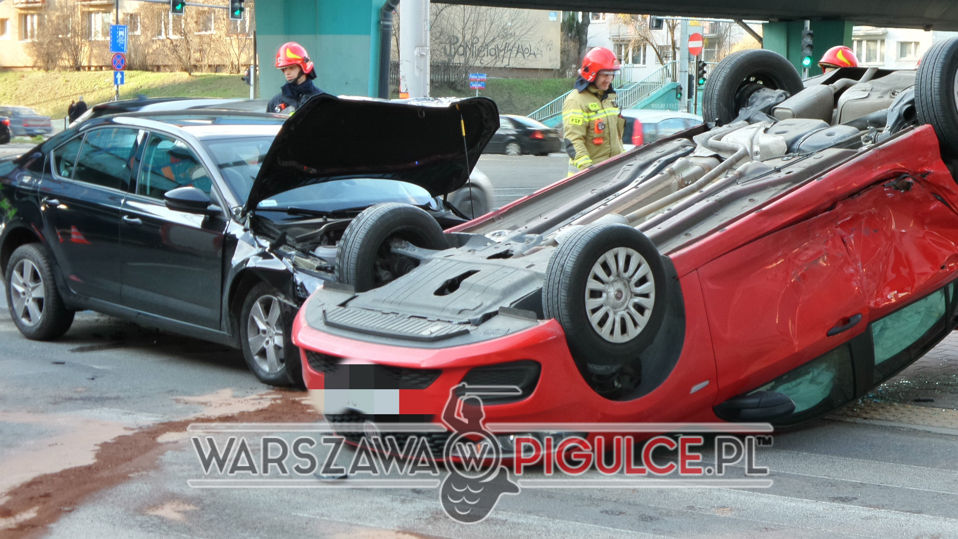 Na skrzyżowaniu Kasprzaka z al. Prymasa Tysiąclecia doszło do zderzenia dwóch samochodów osobowych marki Skoda i fiat. 6 osób jest poszkodowanych badanych w karetkach.