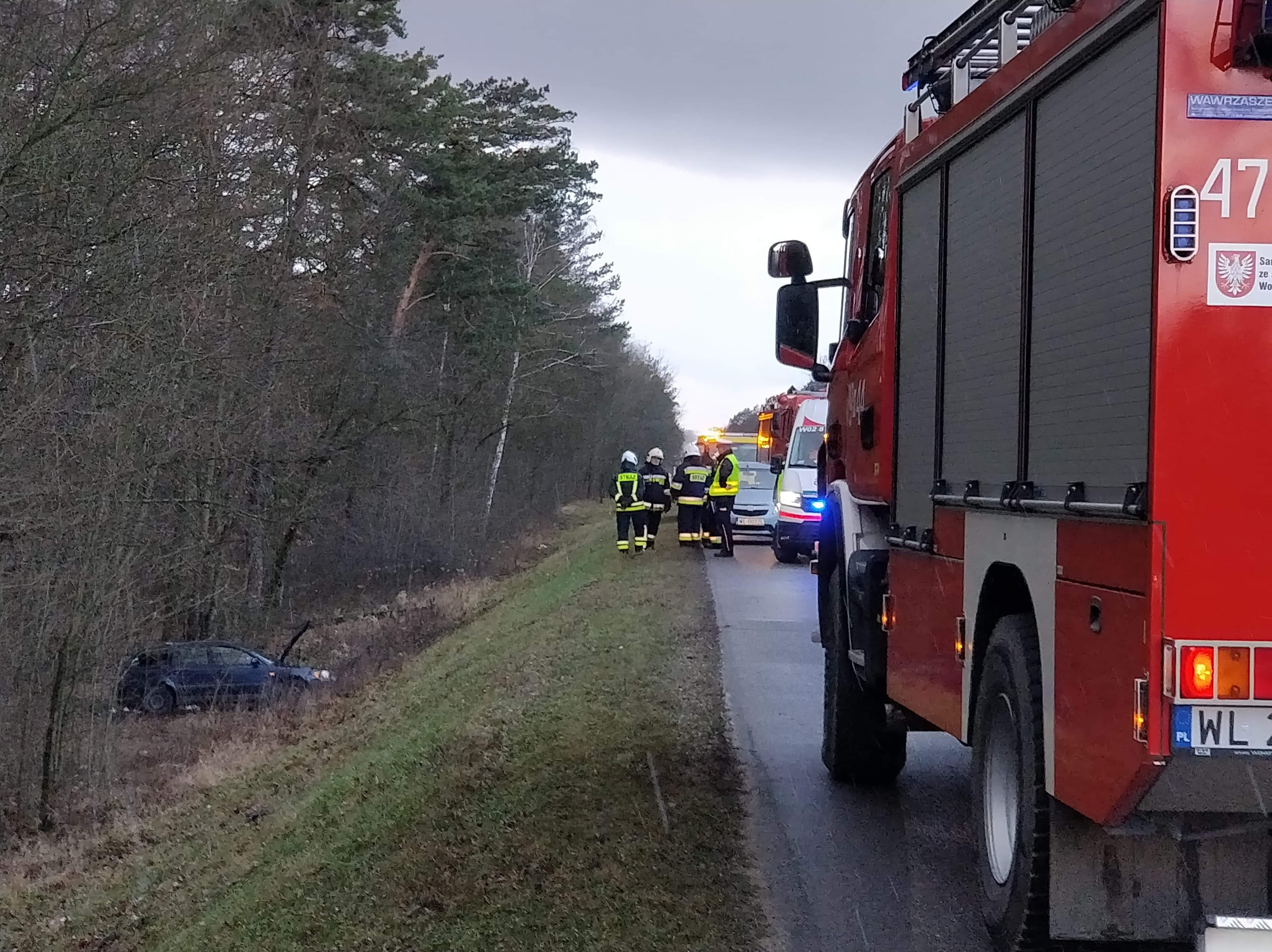 Poważny wypadek pod Warszawą. Auto wpadło do rowu. Ranne 3 osoby, w tym dziecko