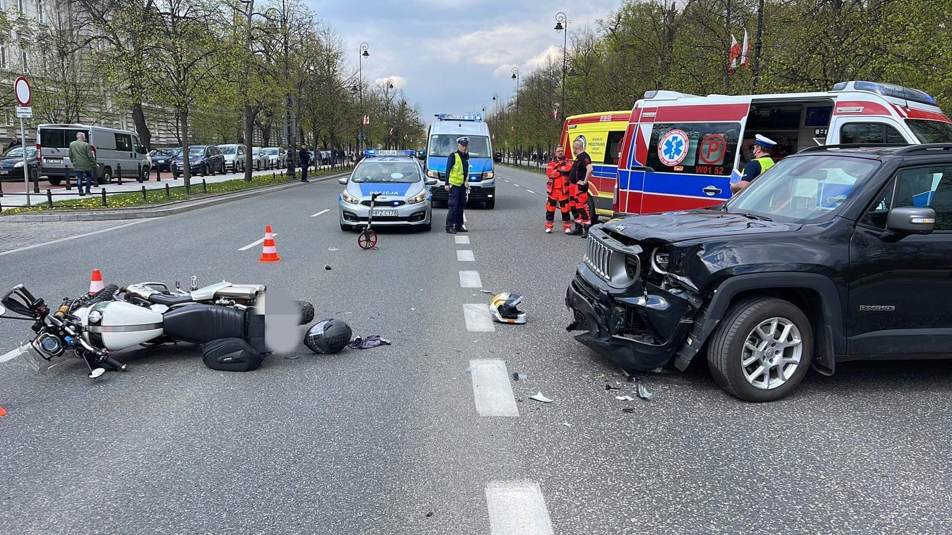Poważny wypadek w al. Ujazdowskich przed KPRM! Dwoje motocyklistów rannych. Ulica zablokowana