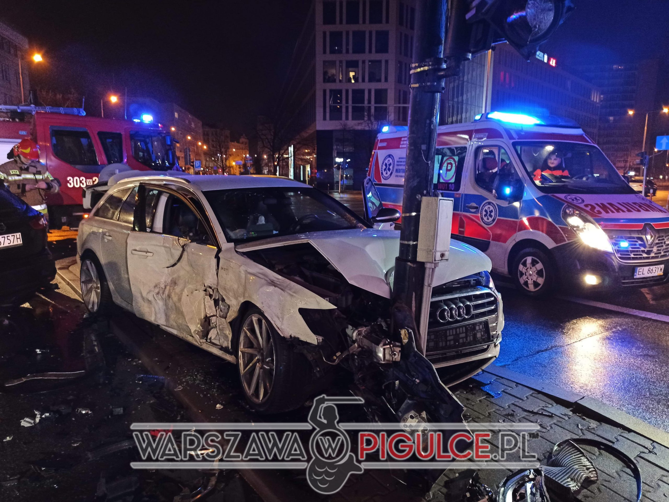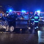 Na skrzyżowaniu Waryńskiego z Batorego doszło do zderzenia dwóch samochodów osobowych audi i nissana. Po zderzeniu audi wjechało w latarnię.