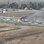 Na miejscu pracowała straż pożarna. Na czas akcji gaśniczej droga była zablokowana.