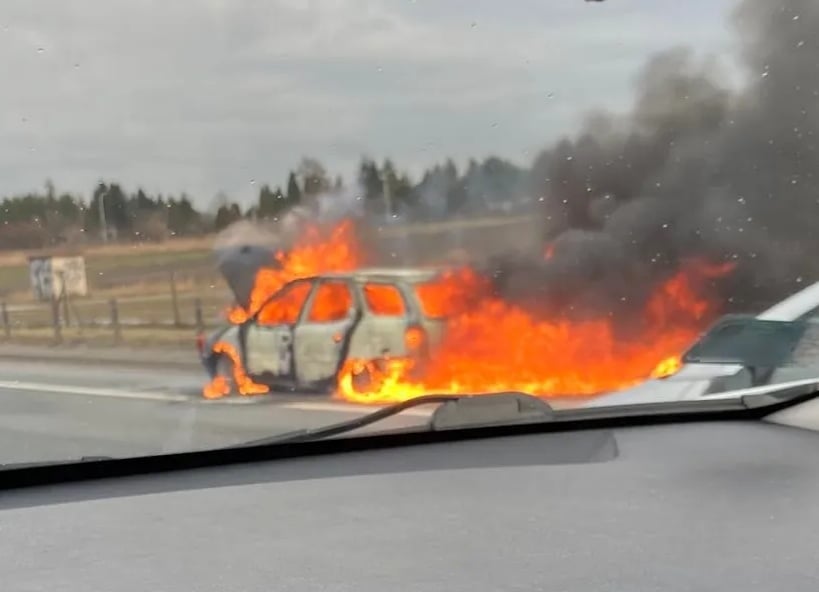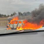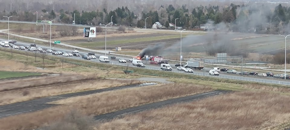 Na trasie S2 na wysokości Palucha w kierunku Konotopy doszło do pożaru samochodu osobowego. Pojazd był cały objęty ogniem. Jedna osoba doznała lekkich poparzeń podczas gaszenia auta. Została opatrzona na miejscu.