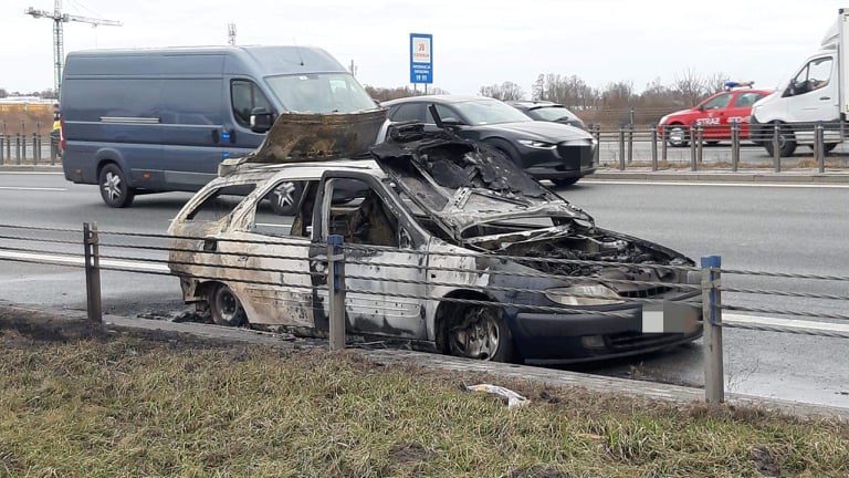 Pożar auta na trasie S2. Jedna osoba została ranna podczas gaszenia