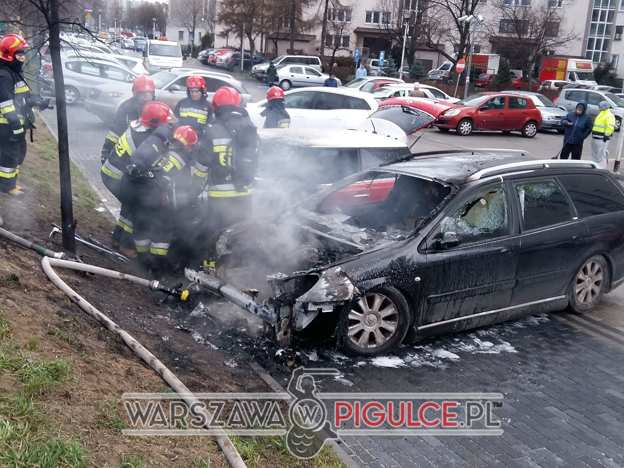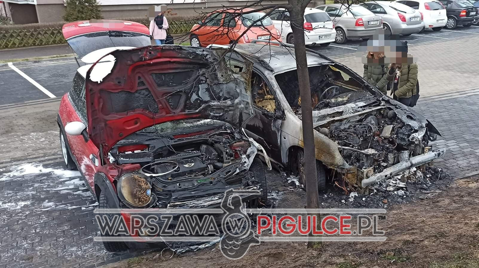 Pożar dwóch samochodów na Gocławiu! Auta spłonęły doszczętnie