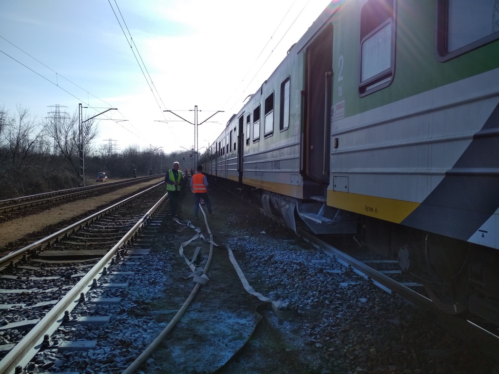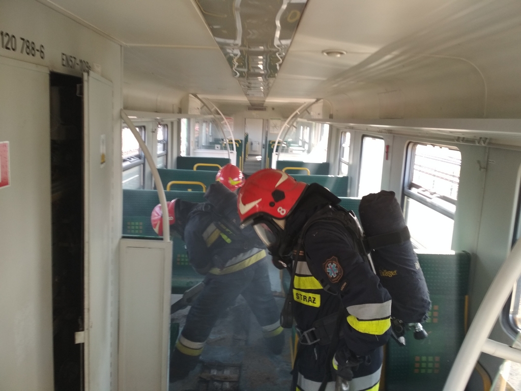 Jak ustalił KDR, przed przybyciem pierwszego zastępu PSP pracownicy kolei podjęli próbę ugaszenia pożaru przy pomocy gaśnic. KDR stwierdził pożar pociągu złożonego z dwóch elektrycznych zespołów trakcyjnych. W trakcie rozpoznania ustalono, że dym wydobywa się w dwóch niezależnych miejscach.