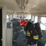 Po informacji o odłączeniu zasilania w prąd elektryczny i wstrzymaniu ruchu pociągów przystąpiono do gaszenia pożaru przy pomocy 2 prądów piany. W celu zlokalizowania pożaru dokonano rozbiórki części składu. Zdemontowano osłony oporów rozruchowych oraz wykonano demontaż kilku foteli i przecinkę podłogi. Wagony pociągu sprawdzono przy użyciu kamery termowizyjnej. Po zakończonych działaniach przywrócono ruch kolejowy, a miejsce zdarzenia przekazano protokolarnie zarządcy.