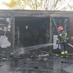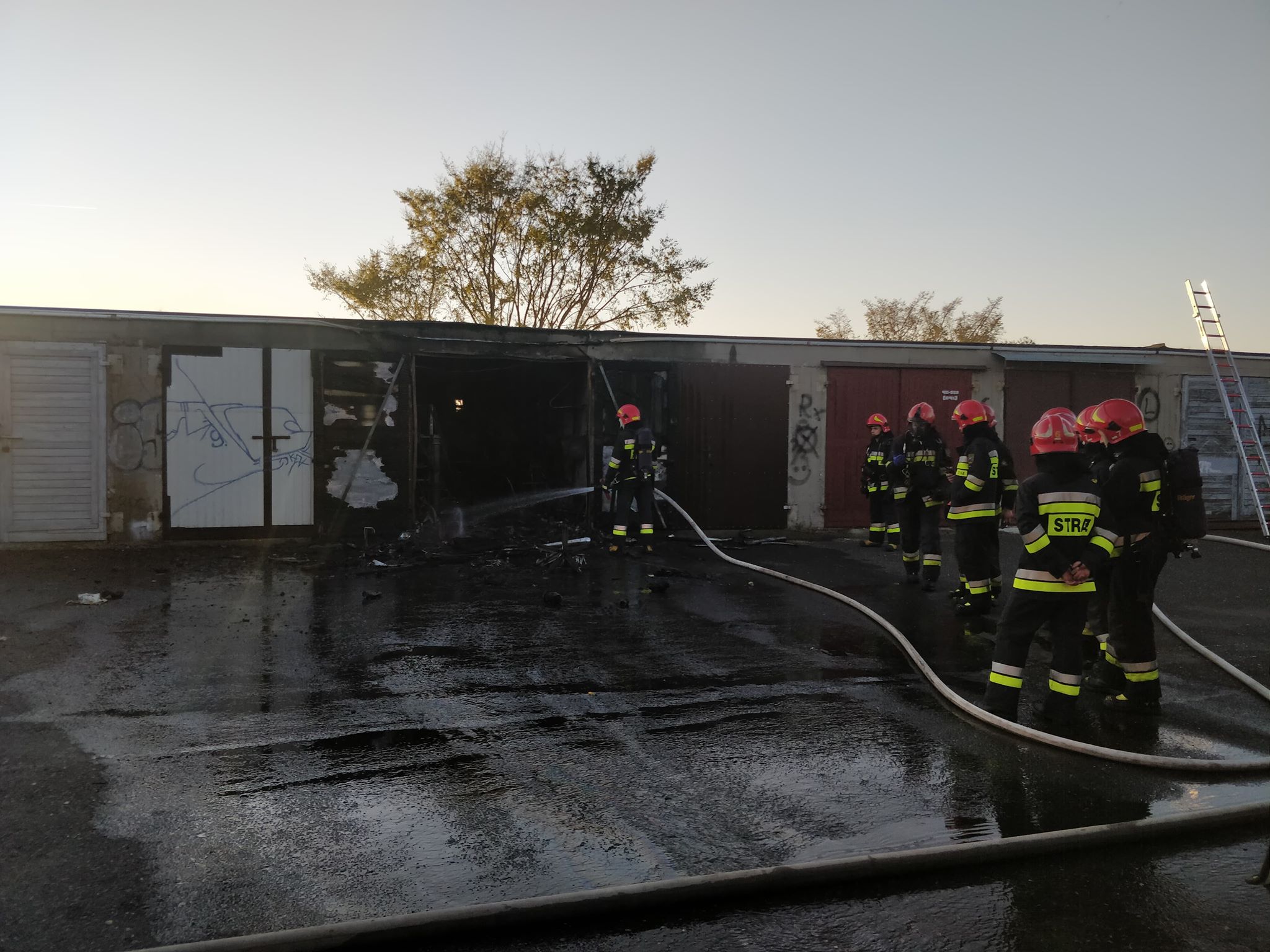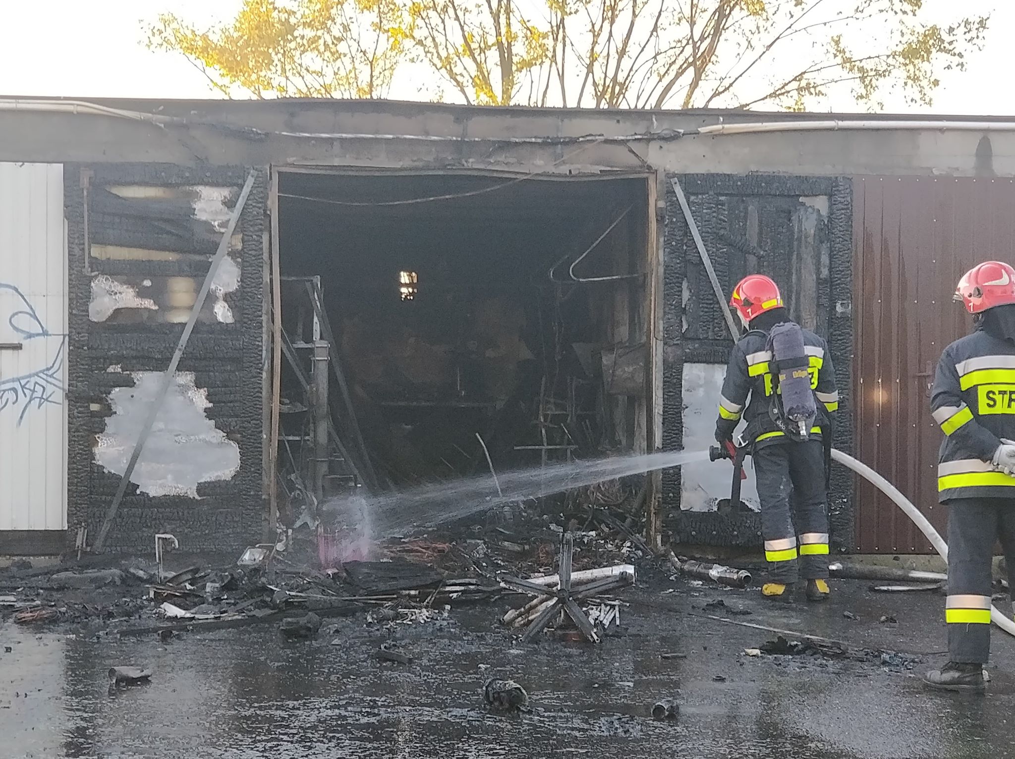 Pożar garażu na Bemowie. Jedna osoba poparzona, w środku butle z gazem