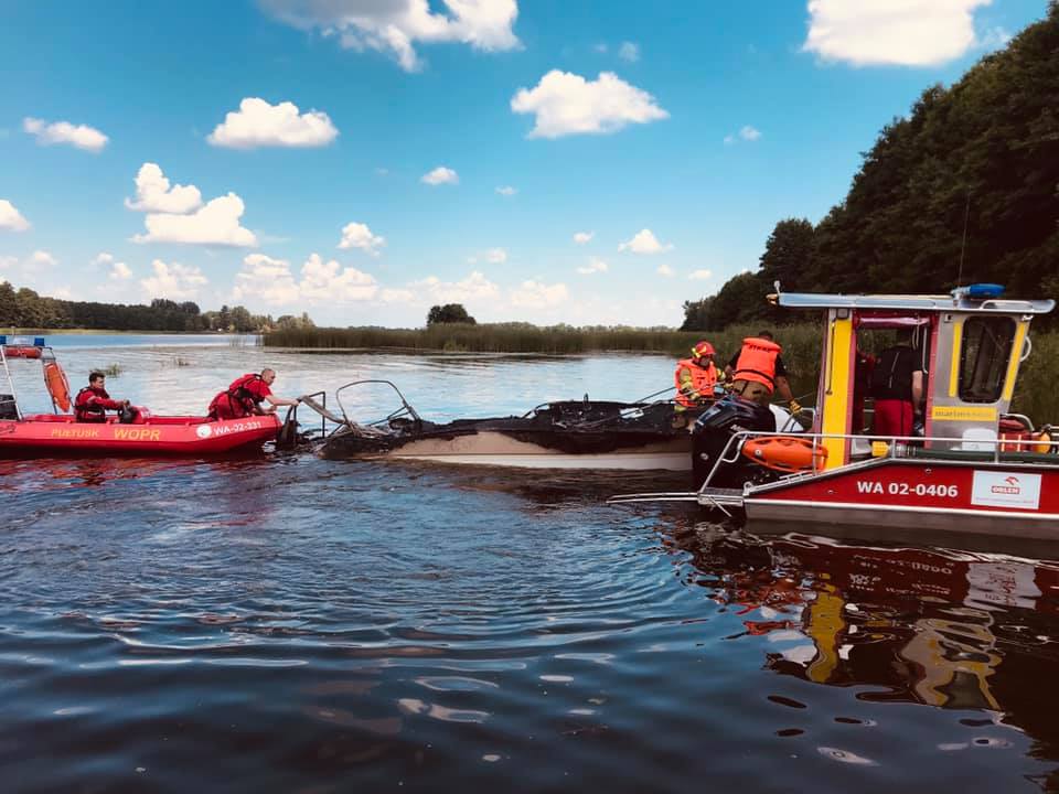 „Po dotarciu na miejsce załoga 201 przystąpiła do udzielania pierwszej pomocy poszkodowanym, a załoga 210 przystąpiła do gaszenia pożaru. Chwile później na miejsce dotarła karetka wodna. Na łodzi znajdowało się 5 os (2 dorosłych i 3 dzieci), 1 osoba została przetransportowana do szpitala, jednostka została ugaszona przez załogę 210. Dziękujemy za wspólna akcje WOPR Pułtusk, PSP i Zespołowi Karetki Wodnej. Gratulujemy bohaterskiej postawy Pani poszkodowanej w wyniku pożaru, która uratowała dzieci znajdujące się w kabinie palącej się łódki” – opisuje akcje Legionowskie WOPR