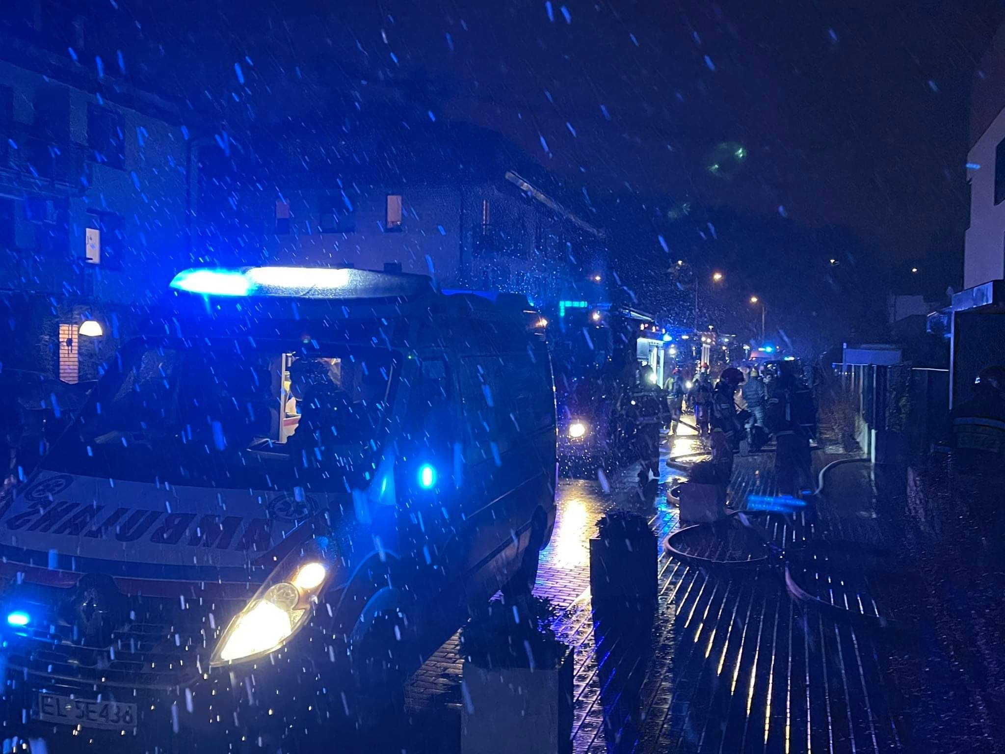 Na miejscu działają 4 zastępy straży pożarnej, dwie karetki pogotowia, policja oraz pogotowie energetyczne.