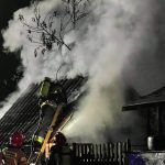 Z ogniem walczą 4 zastępy straży pożarnej.