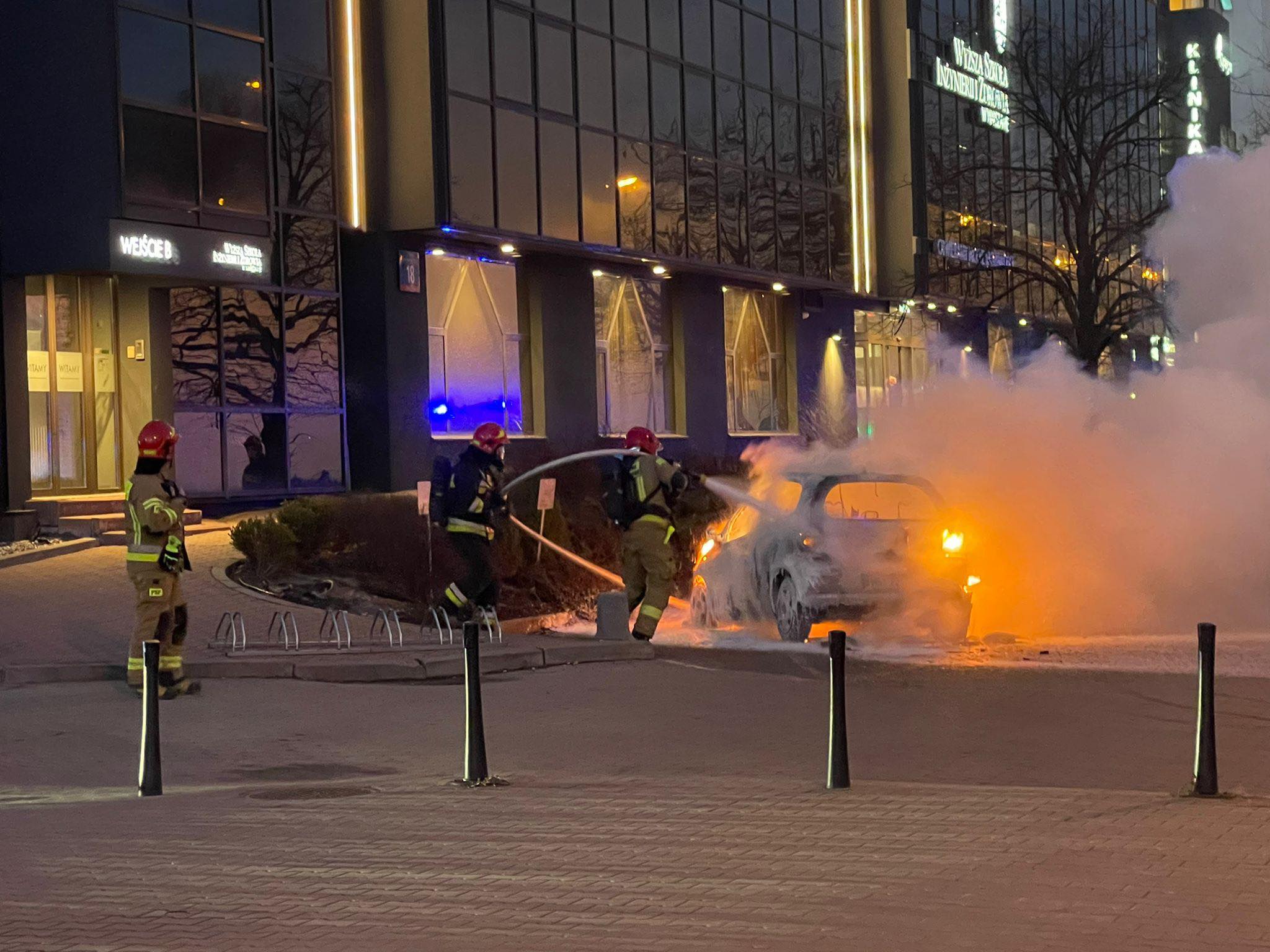 Pożar samochodu osobowego na Ochocie. „Pojazd cały w ogniu”. Trwa akcja gaśnicza