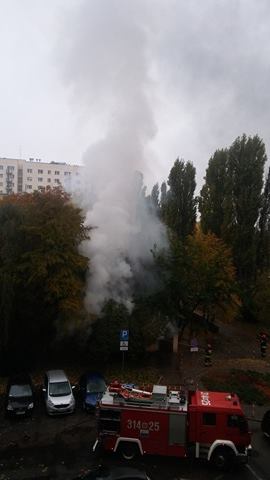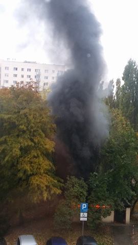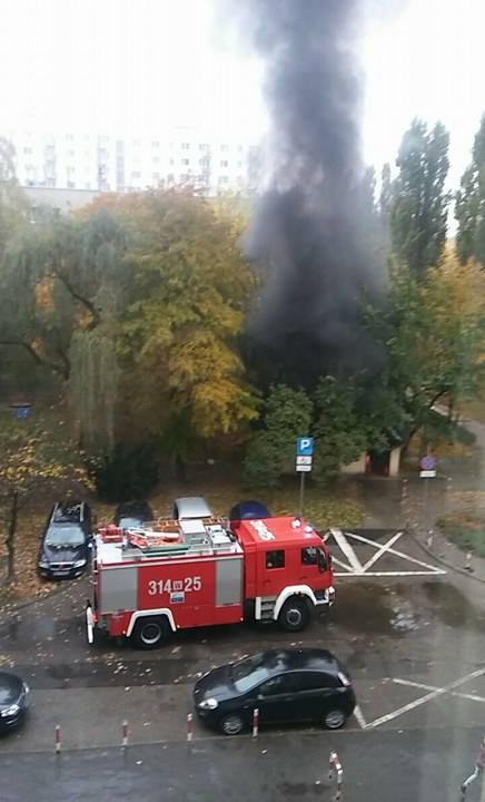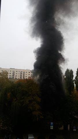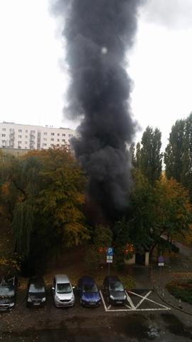 Pożar śmietnika przy ul. Burgaskiej na dolnym Mokotowie. Dym był widoczny z kilku kilometrów, a teren wokół jest zadrzewiony. Zdjęcia i informacje dostaliśmy od Czytelniczki Ani.
