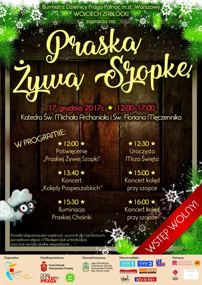Już dziś o 12:00 startuje „Praska Żywa Szopka”. Będziecie mogli na własne oczy zobaczyć żywą szopkę. Oprócz tego będzie można uczestniczyć m.in. w koncertach świątecznych, degustacji dań świątecznych, spotkaniu ze Św. Mikołajem . Wśród upominków od Św. Mikołaja znajdą sie też te z Warszawskiego ZOO :-).