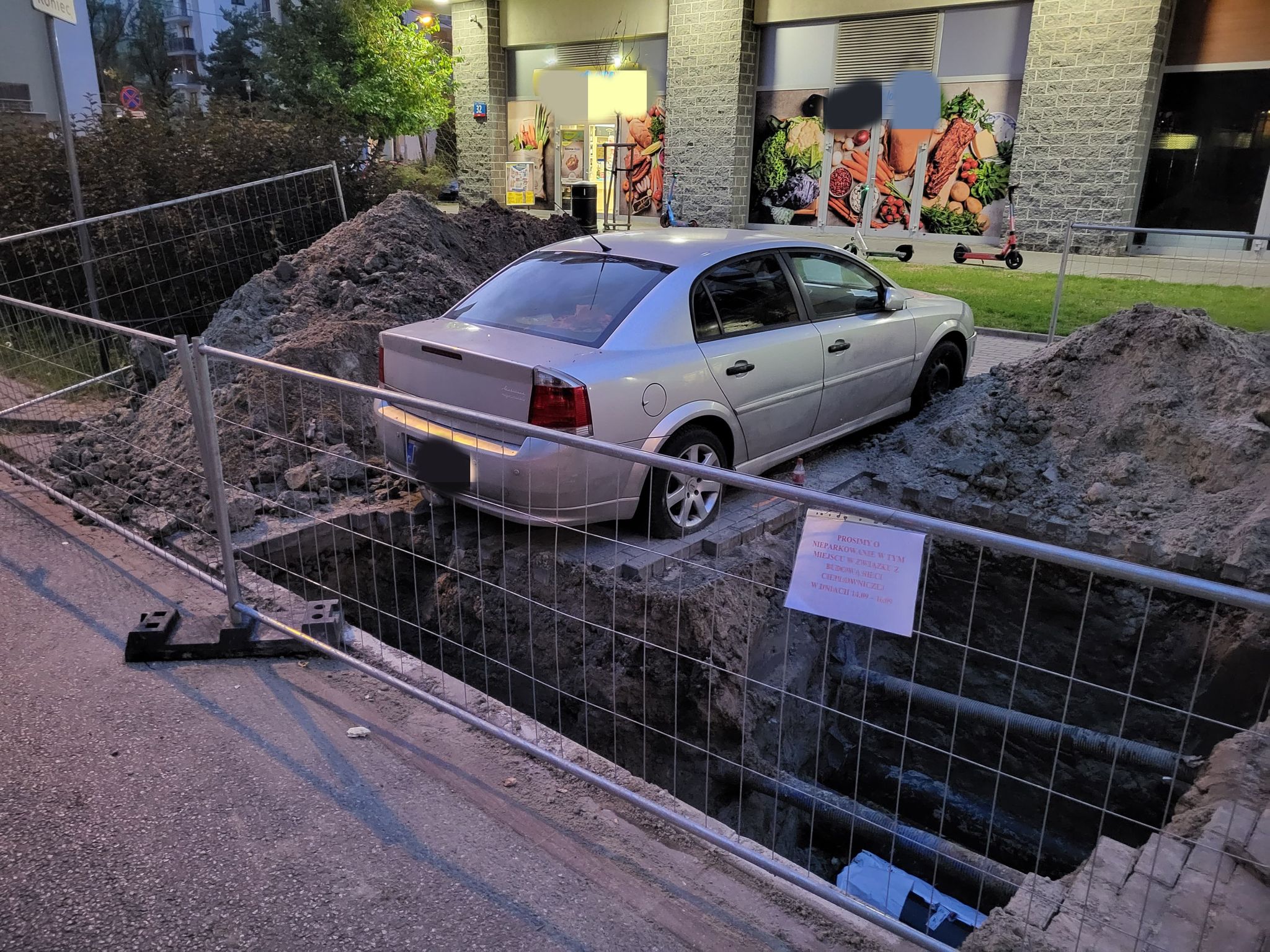 Jeden z kierowców na piaseczyńskich rejestracjach informację miał gdzieś i postanowił zaparkować. Później się zdziwił. Robotnicy tak jak planowali rozpoczęli swoje prace wokół zaparkowanego nieproszonego gościa.