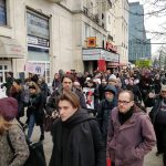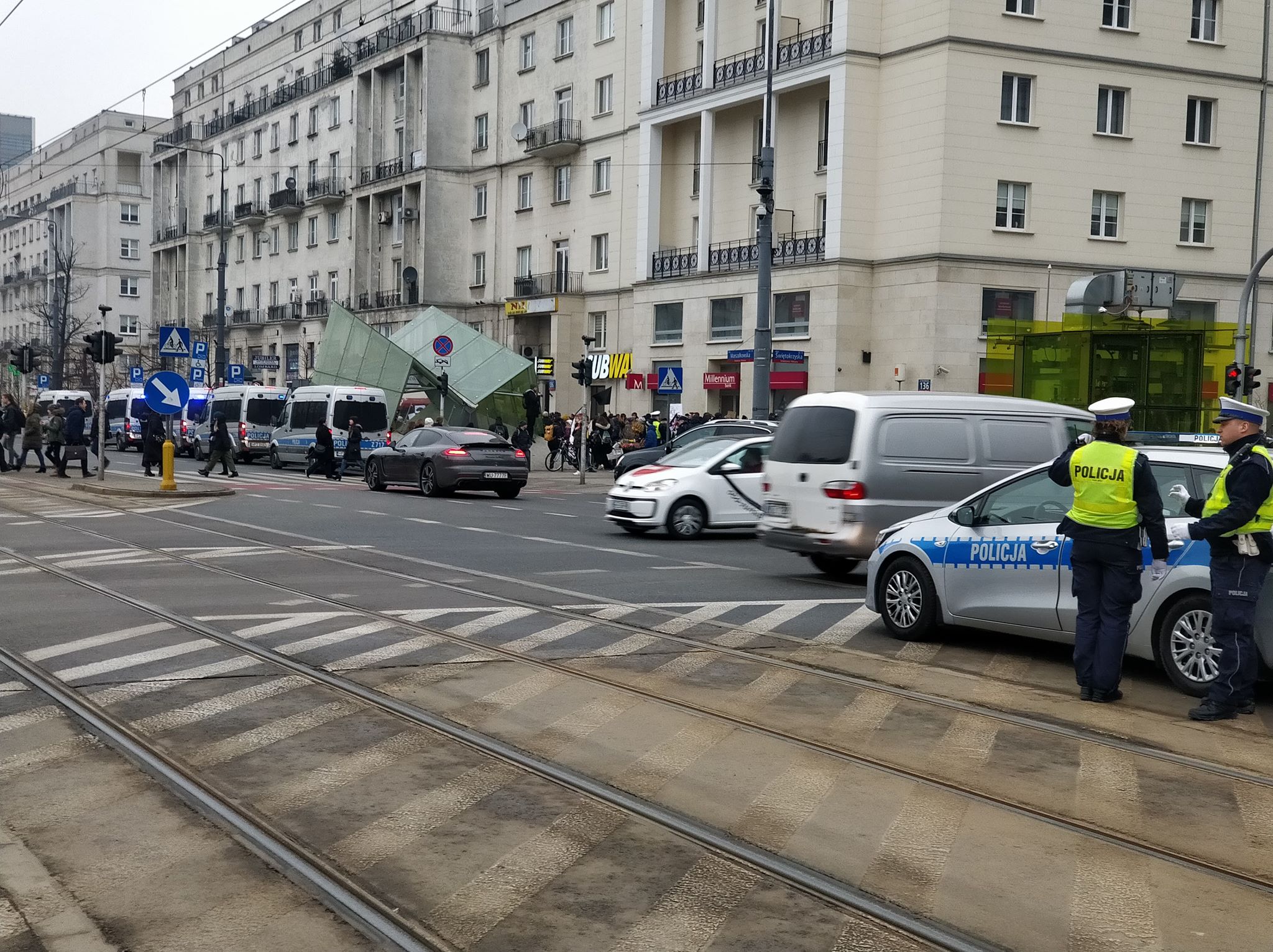 Na ulicy Marszałkowskiej trwa pierwszy etap czarnego protestu. Protestujący chodzą po przejściu dla pieszych w pobliżu wejścia do metra Świętokrzyska. Aktualnie ruch odbywa się płynnie, z drobnymi wyjątkami.
