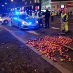 Trwa protest rolników w Centrum Warszawy. Na pl. Unii Lubelskiej rozsypali oni na ulicę jabłka całkowicie blokując przejazd.