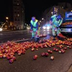 Służby są już na miejscu i uprzątają jabłka próbując udrożnić przejazd.