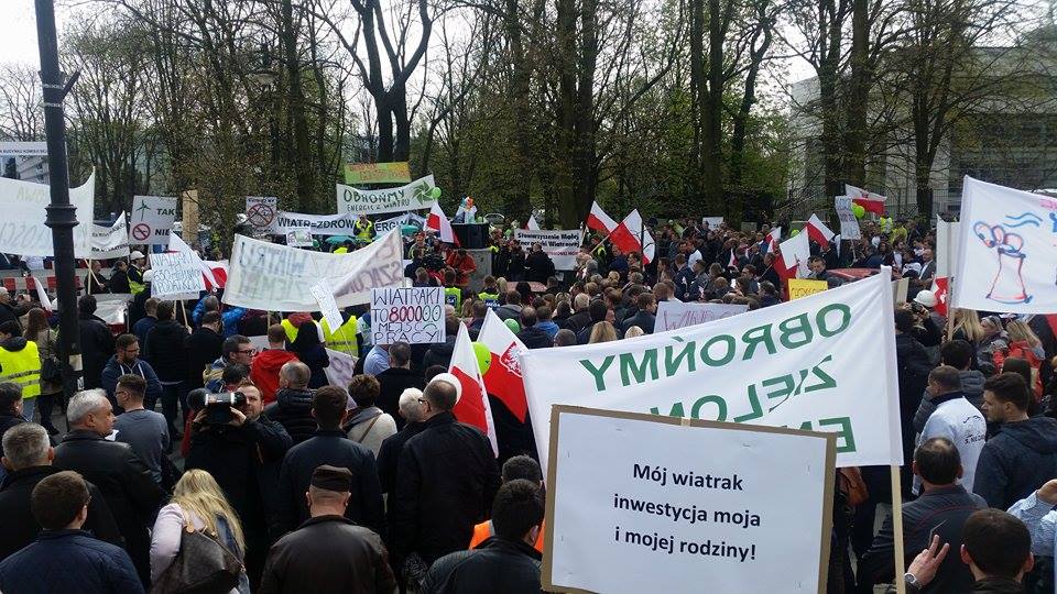 Protest przeciwko ograniczeniu energii wiatrowej. „Brudne powietrze – brudne myśli”, „Chcemy mądrych ustaw”