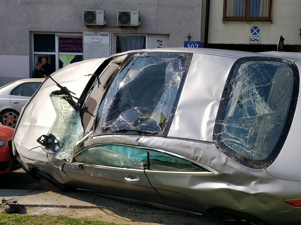 Kierowca mercedesa jadąc w kierunku Marek stracił panowanie nad samochodem, zjechał na przeciwległy pas ruchu, przebił bariery, skosił drzewo, a następnie zaczął dachować. Skończył kołami na dachu zaparkowanego BMW, uprzednio uderzając jeszcze w audi.