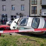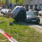 Do niecodziennego i jednocześnie groźnego zdarzenia doszło na ul. Radzymińskiej. Kierowca mercedesa stracił panowanie nad pojazdem, przebił barierki, skosił drzewo, zaczął dachować i skończył kołami na dachu BMW.