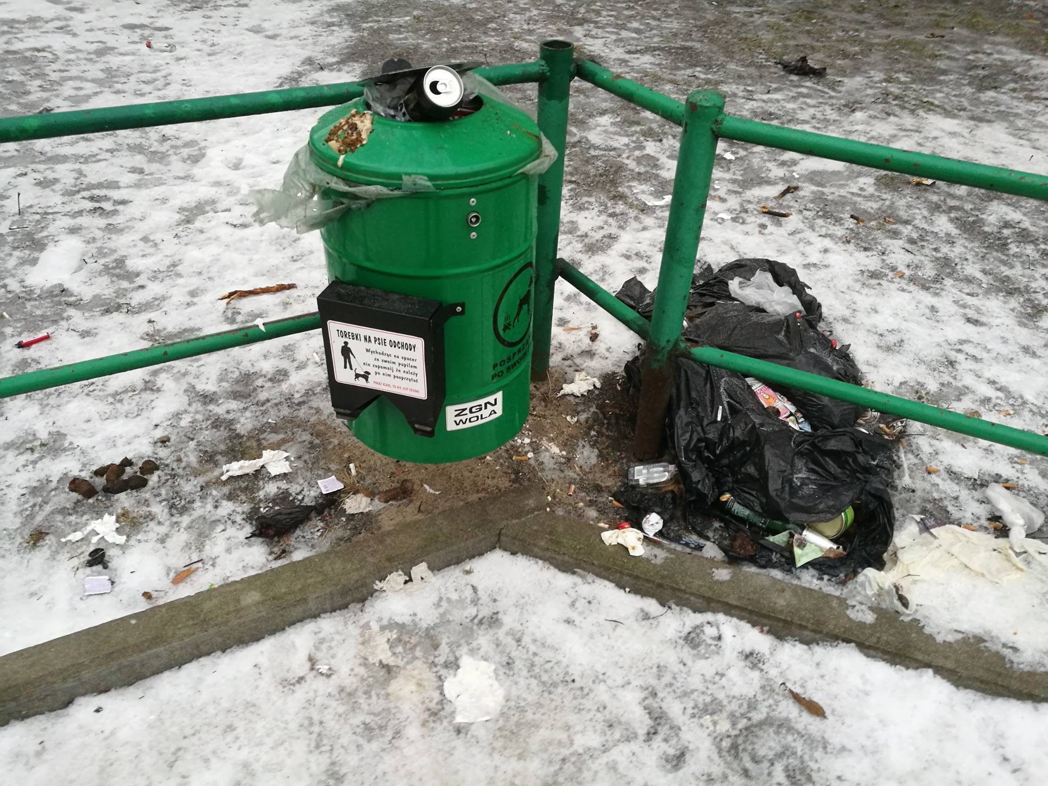 Zawsze mówi się o (bez)kulturze osób (nie)sprzątajacych po psach. Jest jednak też druga strona medalu, czyli postawa służb sprzątających i zarządców terenu. Między ulicami Srebrną a Platynową jest stoi sobie kosz na śmieci sygnowany dumnie logo wolskiego Zarządu Gospodarowania Nieruchomościami. Z psimi „ruchomościami” tut. zarząd radzi sobie niestety nie najlepiej. Kosz stoi przepełniony od miesięcy i, za przeproszeniem, g***o z niego się na ulicę wylewa. Jeśli od teraz trzeba zgłaszać każdy kosz z osobna na Miejskie Centrum Kontaktu Warszawa 19115 to trochę kiepsko.