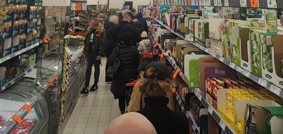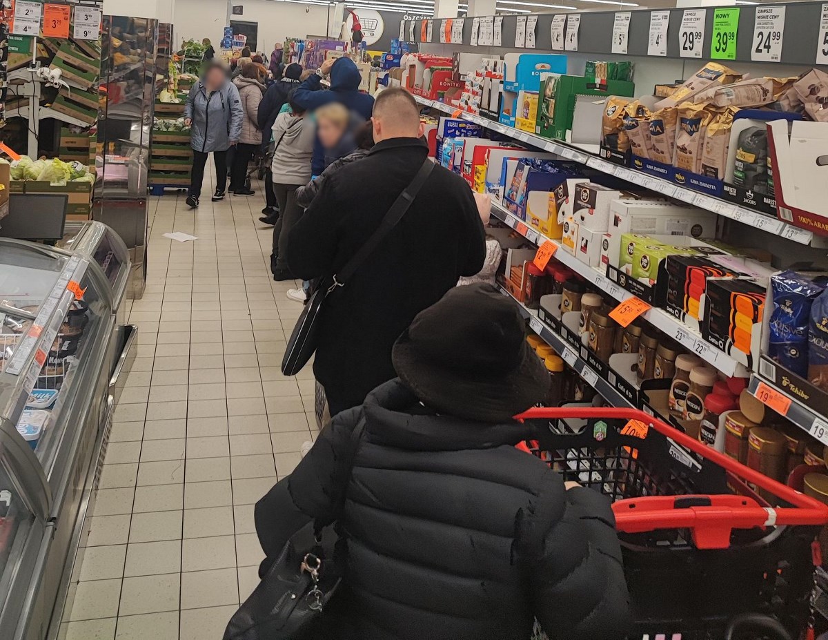 W sklepach popularnego dyskontu ogromne kolejki. Wszystko przez zbliżające się święta i fakt, że w piątek zakupów nie zrobimy.
