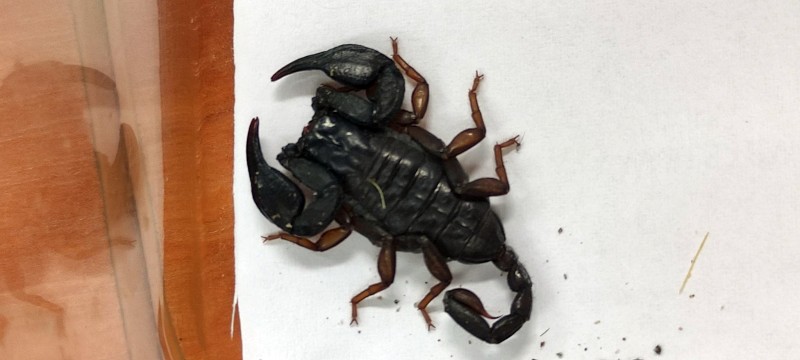 Ich oczom ukazał się mały, czarny i w dodatku żywy… skorpion. Prawdopodobnie przyjechał „na gapę” z Chorwacji, w jednej z walizek. Trudno powiedzieć, co sprawiło, że mały podróżnik wyszedł ze swojej kryjówki dopiero teraz. Zaskoczeni i przestraszeni mieszkańcy wezwali na miejsce strażników miejskich z Ekopatrolu, którzy zabrali stawonoga i przewieźli go do Centrum CITES na terenie warszawskiego ZOO, gdzie trafił pod opiekę specjalistów.