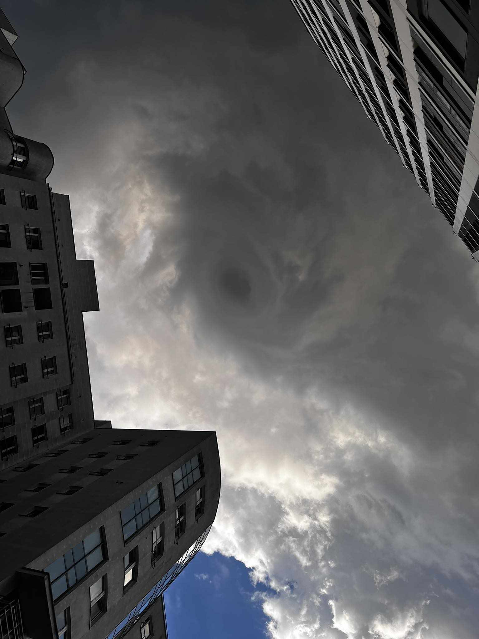 Na pierwszy rzut oka wygląda to na zalążek trąby powietrznej, czyli proces formowania się leja kondensacyjnego.