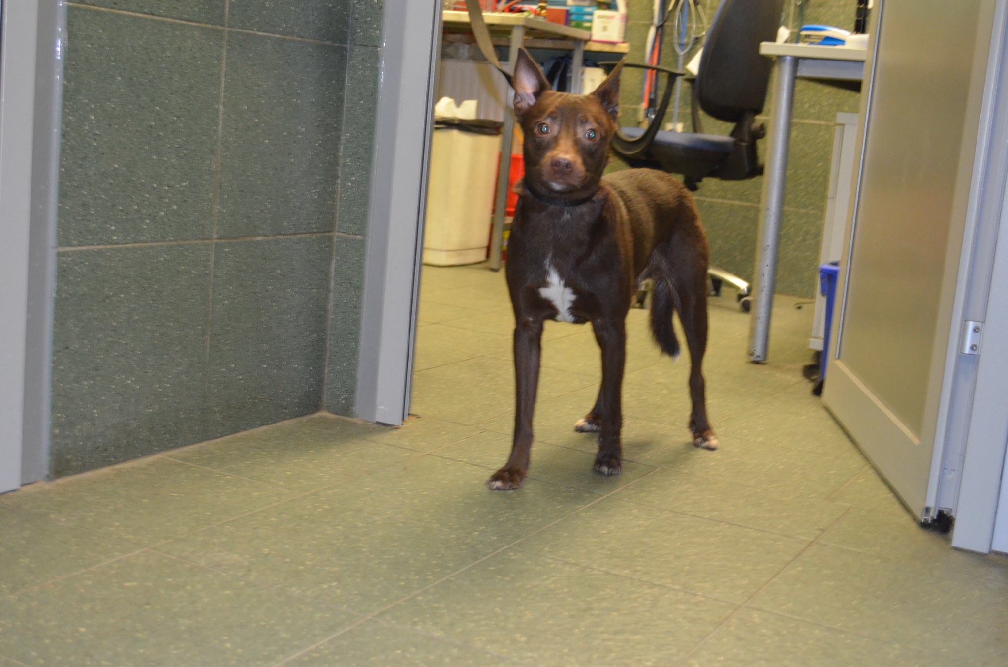 A może ktoś psiny szuka?…młodziutki,czekoladowy kundelek,wysokością sięgający do kolan.” – napisała Pani, która znalazła psa.