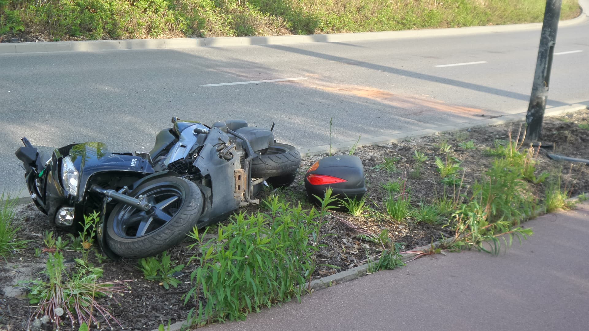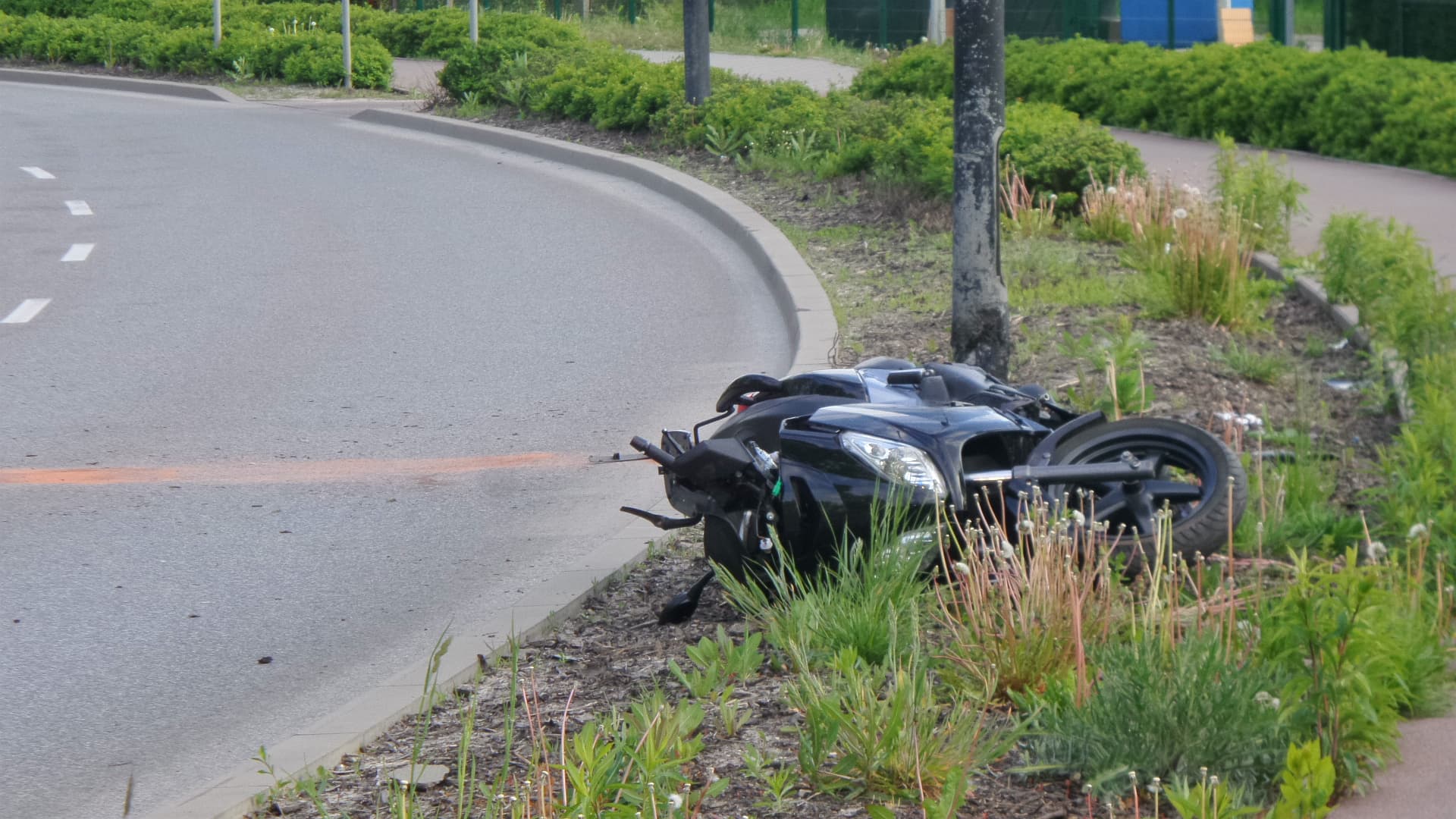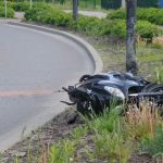 Ze wstępnych informacji wynika, że kierujący jednośladem mężczyzna stracił równowagę i upadł na jezdnię uderzając motocyklem w latarnię.