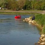 Aby wyłowić ciało na brzeg potrzebni było strażacy z łodzią.