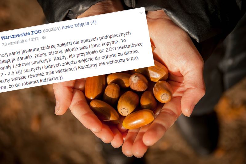 „Uwielbiają je daniele, żubry, bizony, jelenie sika i inne kopytne. To doskonały i zdrowy smakołyk. Każdy, kto przyniesie do ZOO reklamówkę (ok. 2 – 2,5 kg) suchych i ładnych żołędzi wejdzie do ogrodu za darmo. Orzechy włoskie również mile widziane;) Kasztany nie wchodzą w grę, chyba, że do robienia ludzików;))” – pisze warszawskie ZOO.