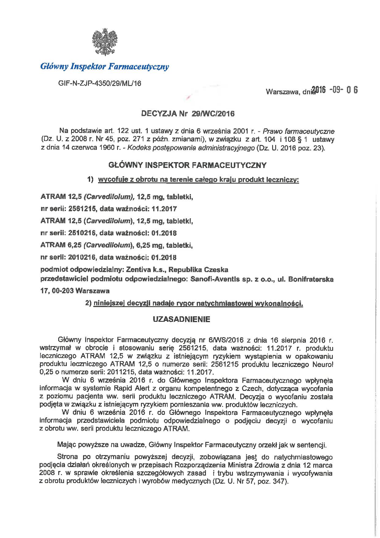 Główny Inspektorat Farmaceutyczny wycofuje preparat z aptek i ostrzega pacjentów, by go nie brać. W lekach Atram znalazły się leki psychotropowe o nazwie Neurol.