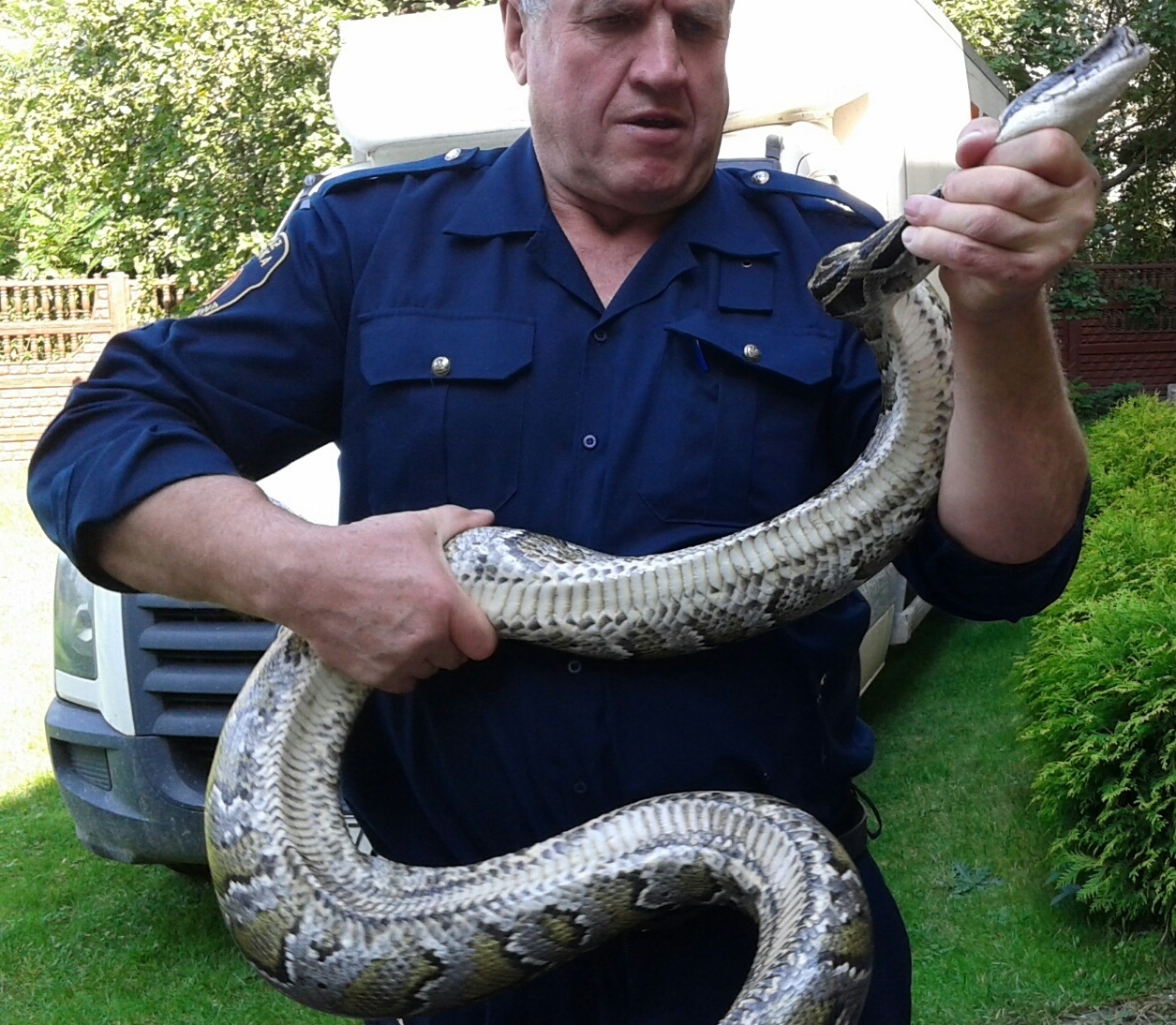 Około 2,5-metrowego pytona tygrysiego znalazł w swoim ogródku w czasie prac porządkowych właściciel jednej z posesji we Włochach. O pomoc poprosił strażników z warszawskiego Ekopatrolu
