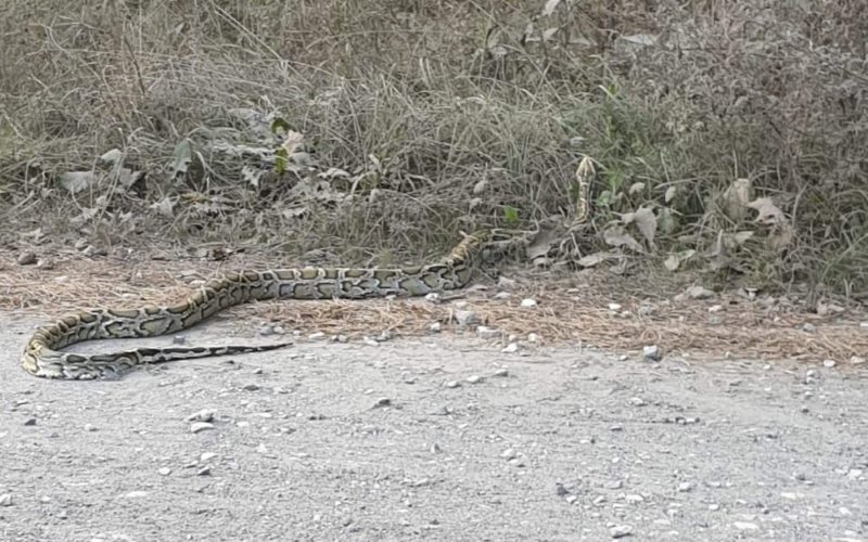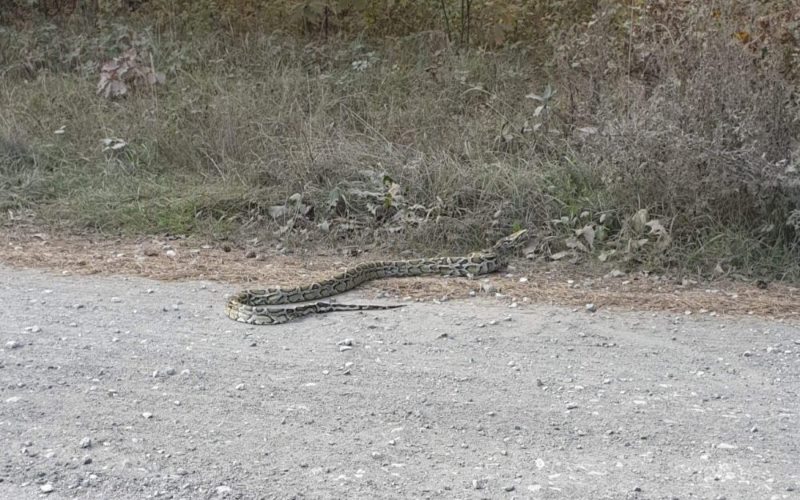 „W godzinach wieczornych otrzymaliśmy zgłoszenie o znalezieniu Pytona Tygrysiego na drodze pomiędzy Sulejowem a Piotrkowem Trybunalskim. Ranne zwierzę szukało możliwości wygrzania się na asfalcie” – pisze Fundacja Animal Rescue Polska.