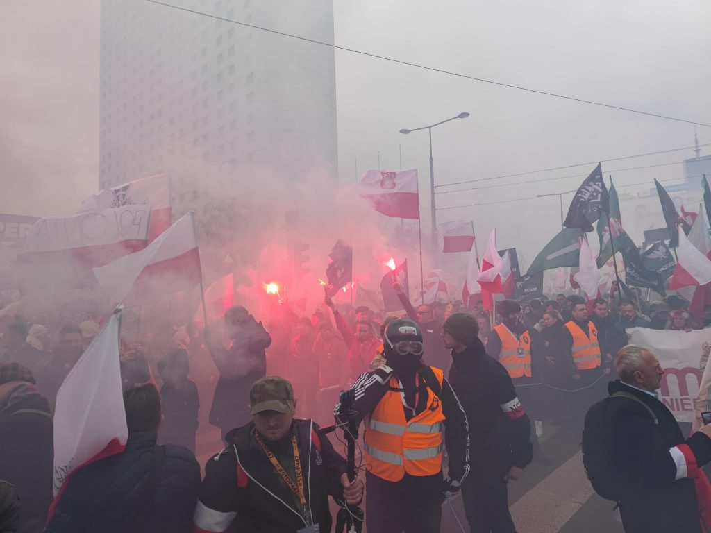 Race i dym na Rondzie Dmowskiego. Ogromny marsz przejdzie ulicami Warszawy