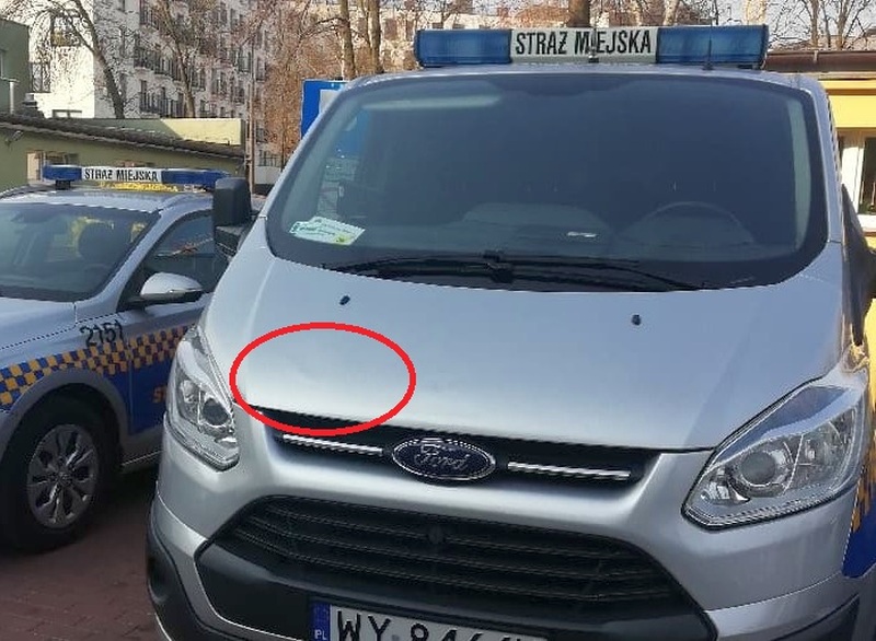 Strażnicy ze Śródmieścia zostali wezwani 5 kwietnia do osoby nietrzeźwej, która nie radziła sobie z grawitacją. W czasie ich nieobecności, nieznany mężczyzna podszedł do pozostawionego na parkingu radiowozu i zaczął okładać go pięściami. Wgniecenia maski pojazdu nie były znaczne, jednak strażnicy ruszyli w pogoń za sprawcą. Z pomocą przyszedł oczekujący na pasażera taksówkarz, który podał rysopis napastnika.