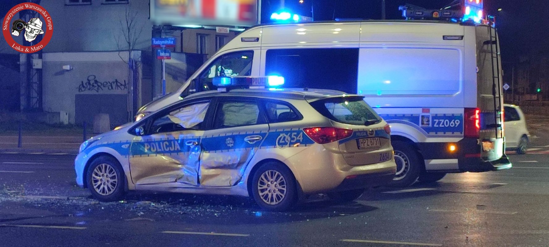 Zderzenie wygląda na poważne i bok radiowozu został uszkodzony. Uważajcie na utrudnienia w ruchu.