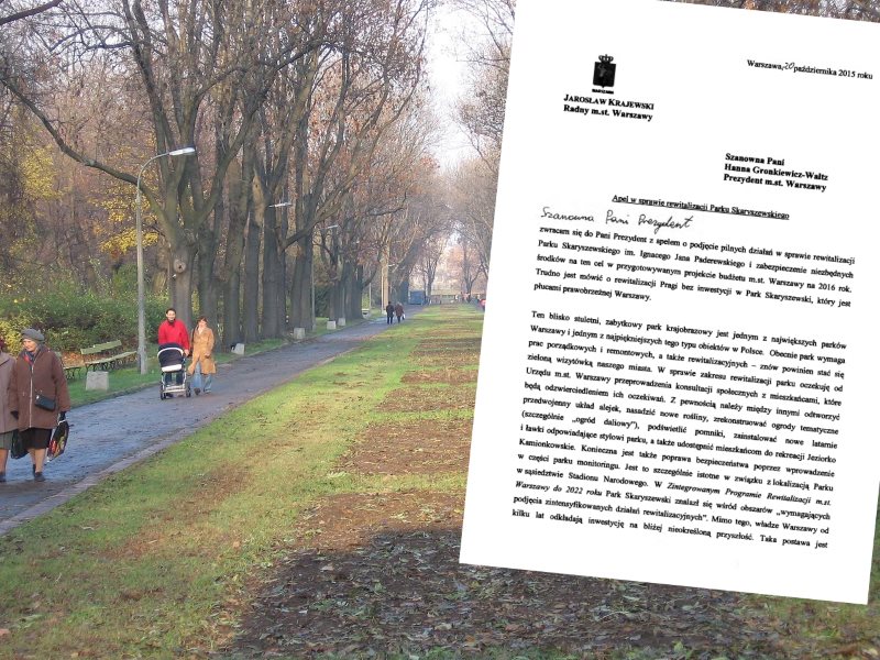 Radni PiS zwracają się do Hanny Gronkiewicz-Waltz, prezydenta stolicy o rewitalizację Parku Skaryszewskiego. Jak argumentują, obiekt jest „płucami prawobrzeżnej Warszawy”. Przy okazji domagają się przeniesienia pomnika „Wdzięczności Żołnierzom Armii Radzieckiej”, który padał ostatnimi czasy wielokrotnym aktom wandalizmu.
