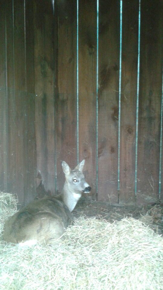 „Jelonek miał spuchniętą nogę i mocno utykał. Z trudem się poruszał. Gdy podeszliśmy, był spokojny, nie uciekał i bez problemu dał się nam odłowić” – relacjonuje podejmująca interwencję st. spec. Grażyna Gołoś z Eko Patrolu.