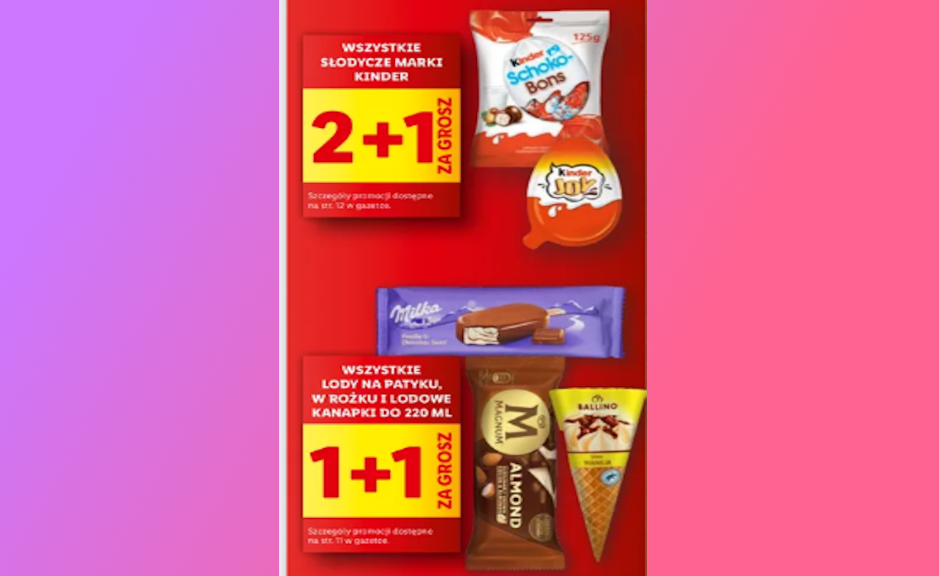 Już jutro rano sklepy Lidl zapraszają na wyjątkową promocję, która z pewnością przyciągnie rzesze klientów. W ramach najnowszej oferty, słodycze marki Kinder oraz wybrane lody w pudełkach do 220 ml będą dostępne w atrakcyjnych cenach oraz w promocji „kup dwa, a trzeci dostaniesz gratis” oraz „kup jeden, drugi dostaniesz gratis”.