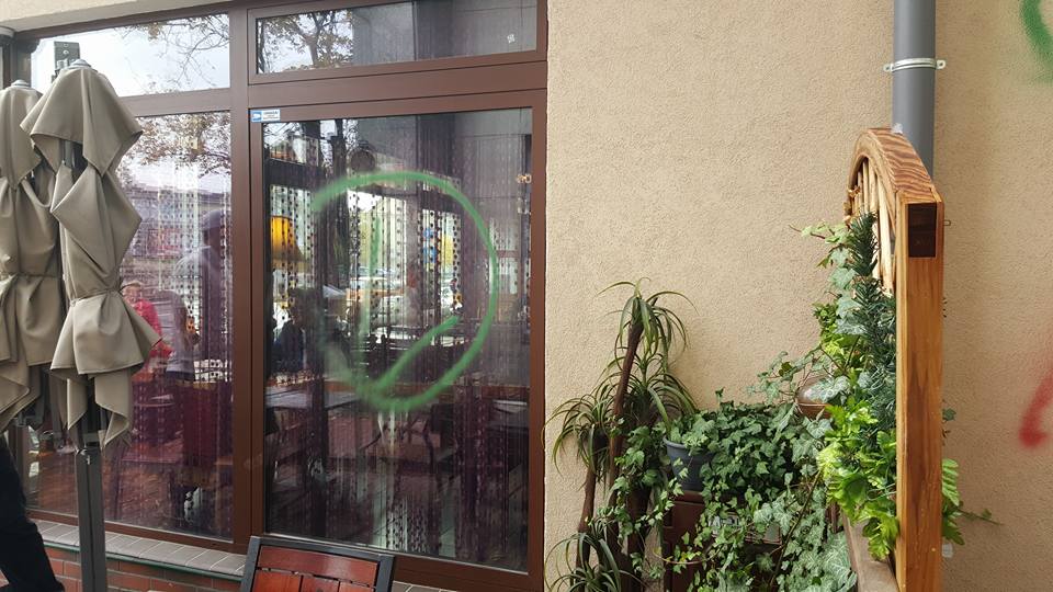 Na elewacji Sedo Kebab na Grójeckiej 68A doszło do aktu wandalizmu. Poza wulgarnymi hasłami ktoś umieścił na drzwiach znak Legii.