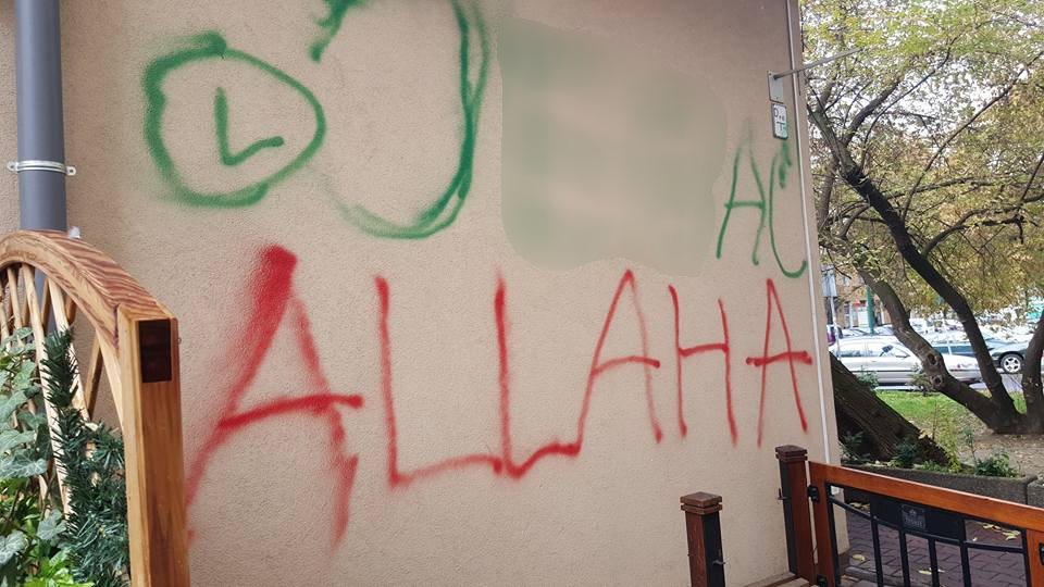 Rasistowskie napisy i znak Legii na budynku Sedo Kebab na Grójeckiej